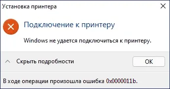 Помилка 0х0000011b при підключенні розшареного принтеру